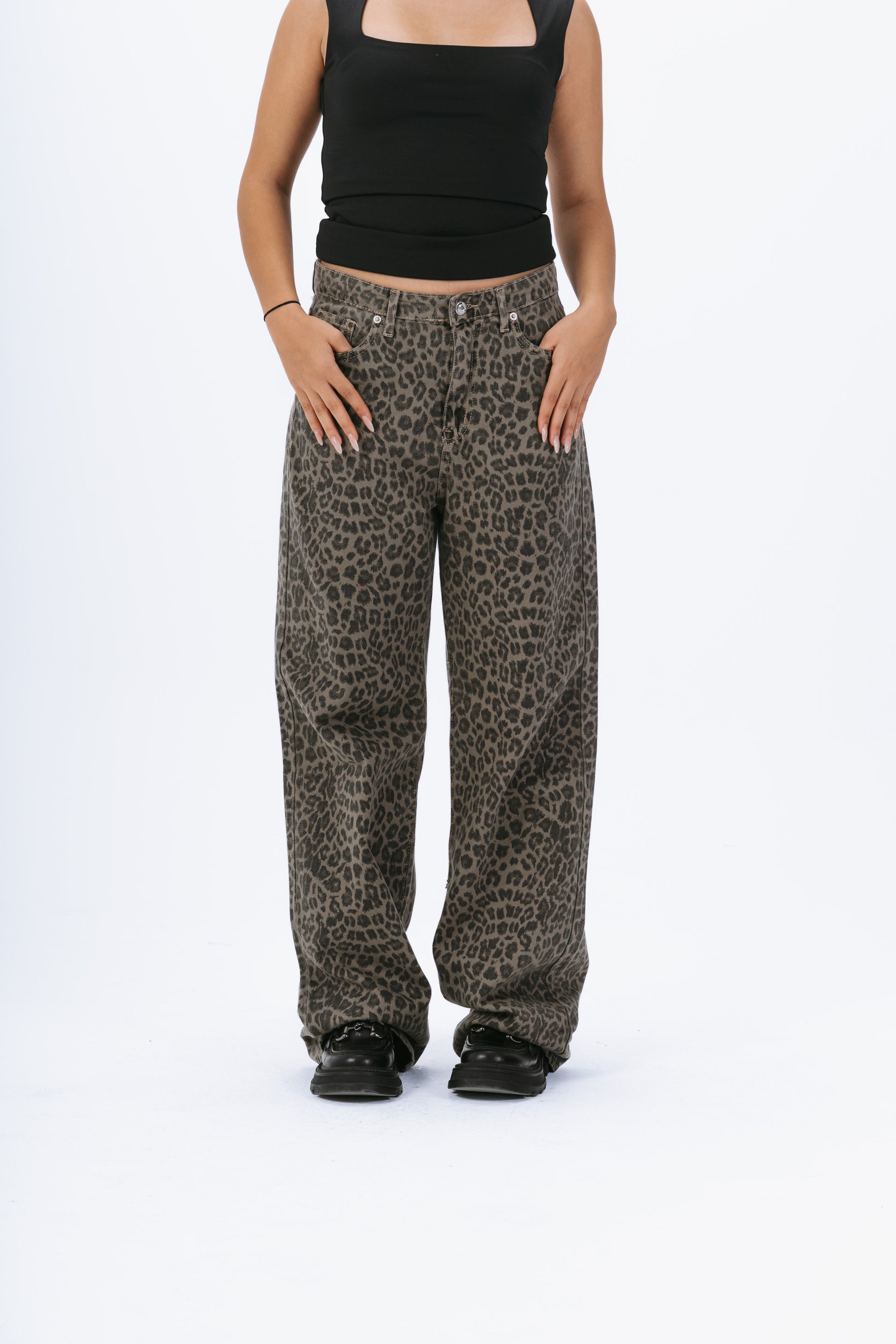 These jeans are a striking combination of extreme volume and a sophisticated, unconventional animal print. They perfectly embody the maximalist trend while maintaining an earthy, wearable color palette.